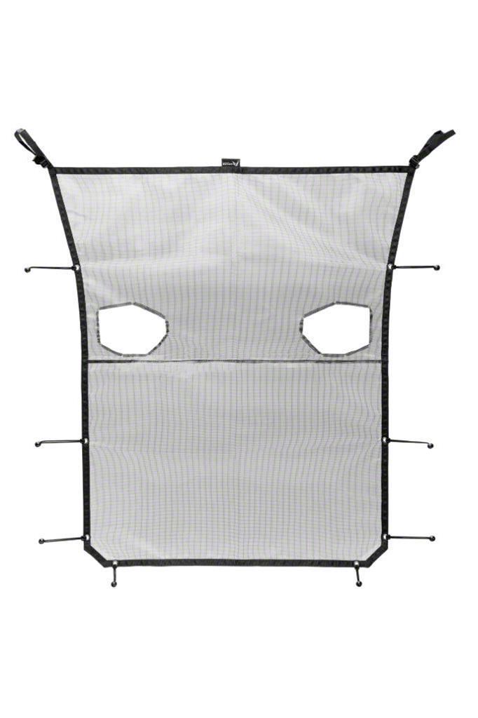 Long-Lasting Construction. The sunshade is made using a tough fabric mesh that resists tears and can catch falling debris. Its simple black coloring suits your off-road style.