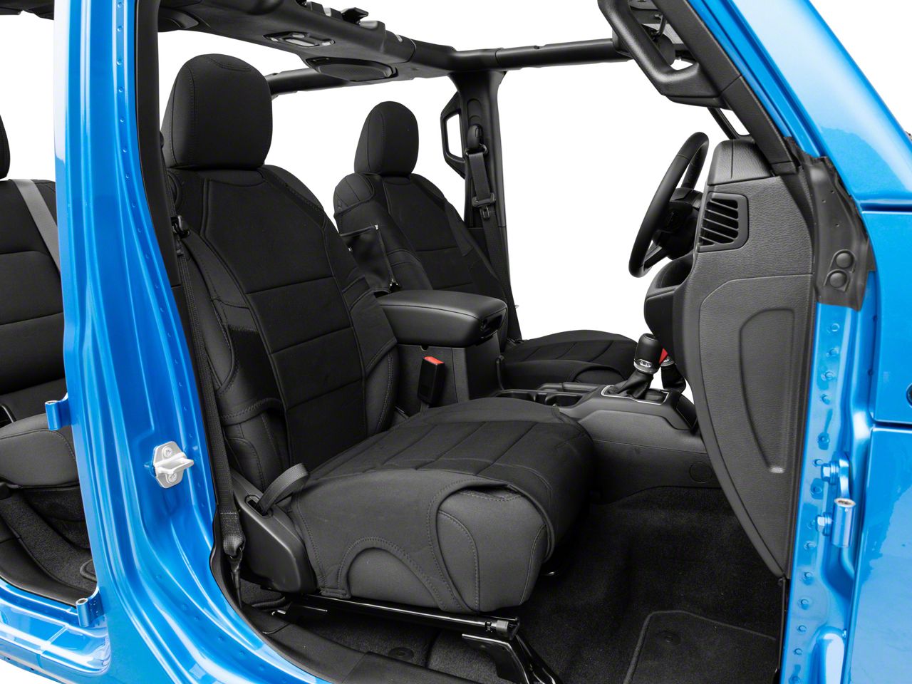 Function. These black Rugged Ridge Neoprene Seat Covers will protect your Jeep Gladiator's seats from all kinds of spills. mud, and more. The covers are made of durable, yet soft neoprene and deliver maximum protection and comfort. The covers have a very sporty look with maximum protection.