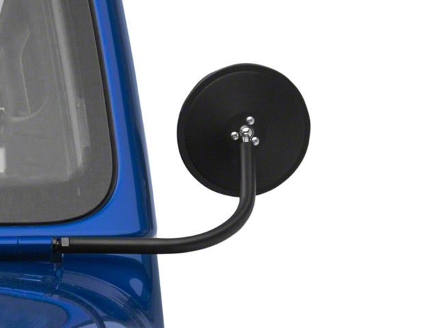 Stay Street Legal With Doors Off. Drive your Jeep Gladiator with your doors removed or with tubular off-road doors without worrying about getting pulled over for lack of side mirrors. Install a Rugged Ridge Round Trail Mirror to stay safe and street legal. It features a 3-inch shorter mirror arm to keep the mirror closer to the Jeep body, preventing it from hitting trail hazards such as tree limbs and shrubberies.