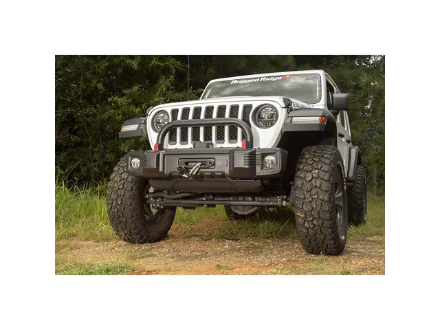 Application. The Rugged Ridge Spartacus Front Bumper Overrider Bar in Satin Black fits all 2020-2025 Jeep Gladiator JT models.