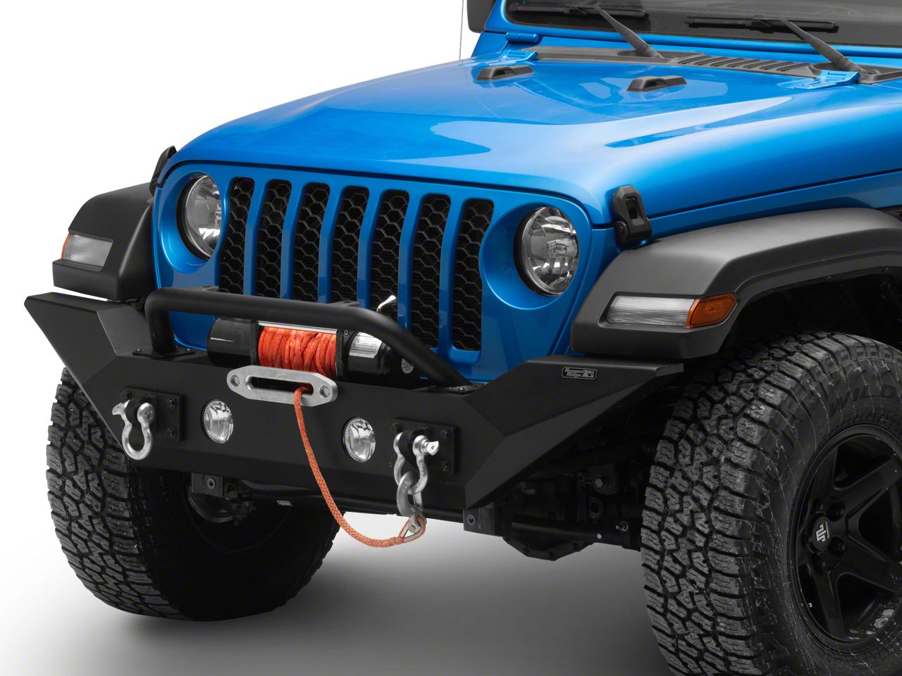 Impenetrable Off-Road Fortress. Turn your Jeep Gladiator into an off-road fortress with this Rugged Ridge Spartan Front Bumper with High Clearance Ends and Over-Rider Hoop. Its sturdy construction and over-rider hoop efficiently divertroad rubbleaway from the front end of your car, keeping it safe. This bumper not only improves front-end shielding, but it also has high clearance ends that give your vehicle a more geometric and intimidating appearance.