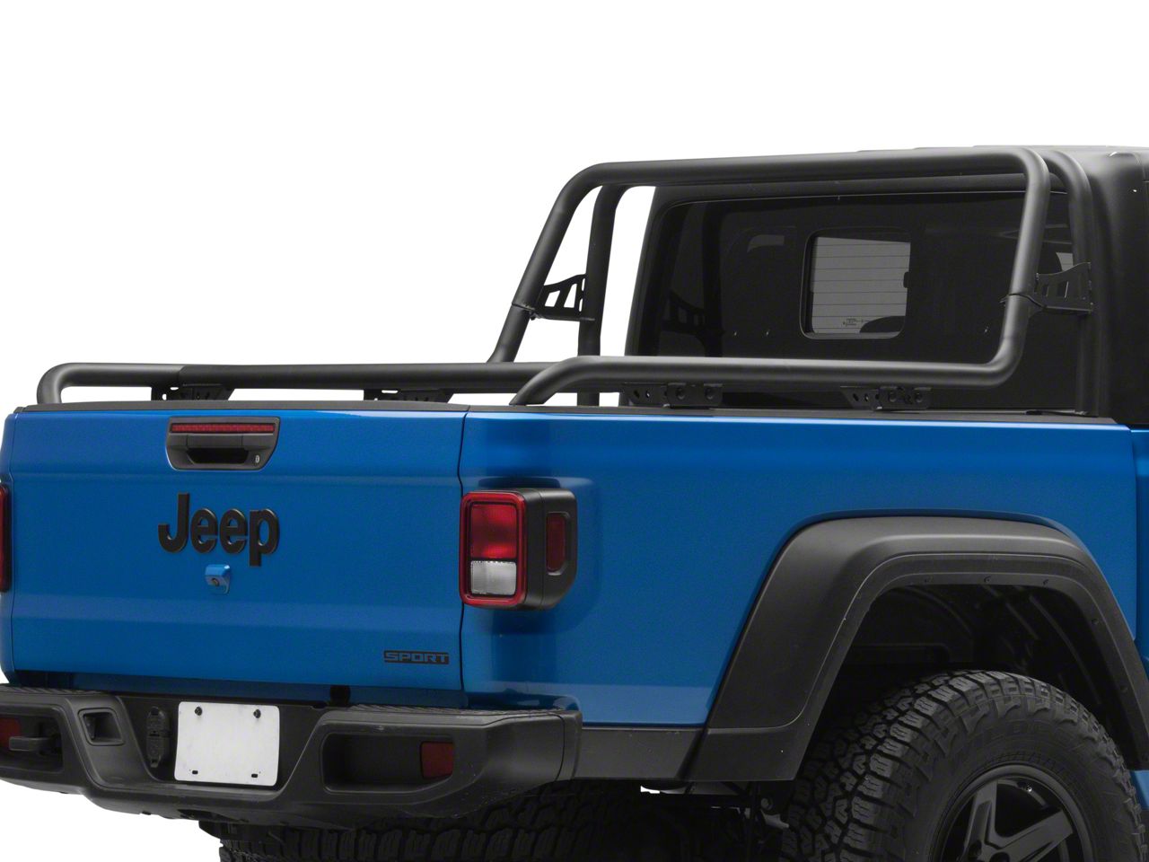 Sporty Upgrade. Enhance the look and functionality of your Jeep Gladiator with this Rugged Ridge Sports Rack. Rocking cleanly bent curves and fashionable punctured mounting holes, it adds a sporty industrial style to your vehicle while also enhancing the effectiveness of your truck bed as it gives you multiple anchor points, provisions for additional light combinations, and a handrail should you need to drive extra passengers.