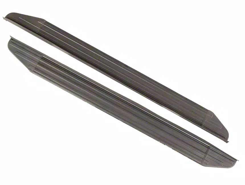 Reliable Platform. Upgrade your Jeep Grand Cherokee with the Rugged Ridge Running Boards; Black, and enjoy the convenience and style they bring to your vehicle. Crafted with durability in mind, these running boards are built to withstand the rigors of off-road adventures and everyday use. With their rugged design, they can handle heavy loads and provide a stable platform for various tasks. The sleek black finish not only adds a touch of style to your Jeep Grand Cherokee but also blends seamlessly with its overall appearance.
