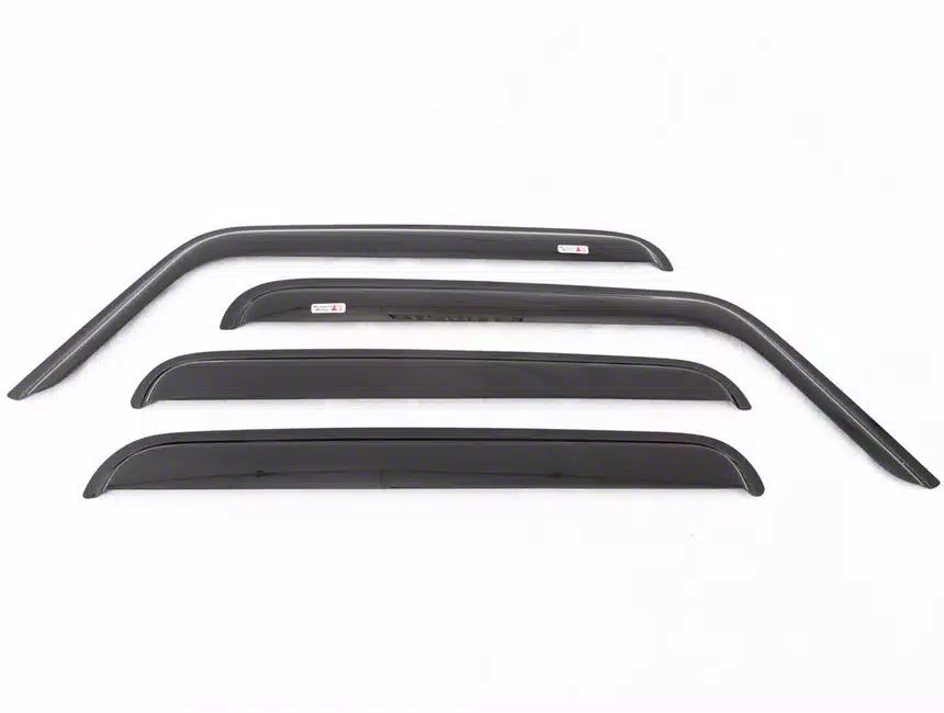 Description. These smoked acrylic side window air/rain deflectors are designed to reduce wind noise while channeling airflow to keep your Jeep's interior free of smoke, stale air and window fogging. The special design channels rain around your window while still allowing air to flow. Shatter resistant construction. Easy to install.