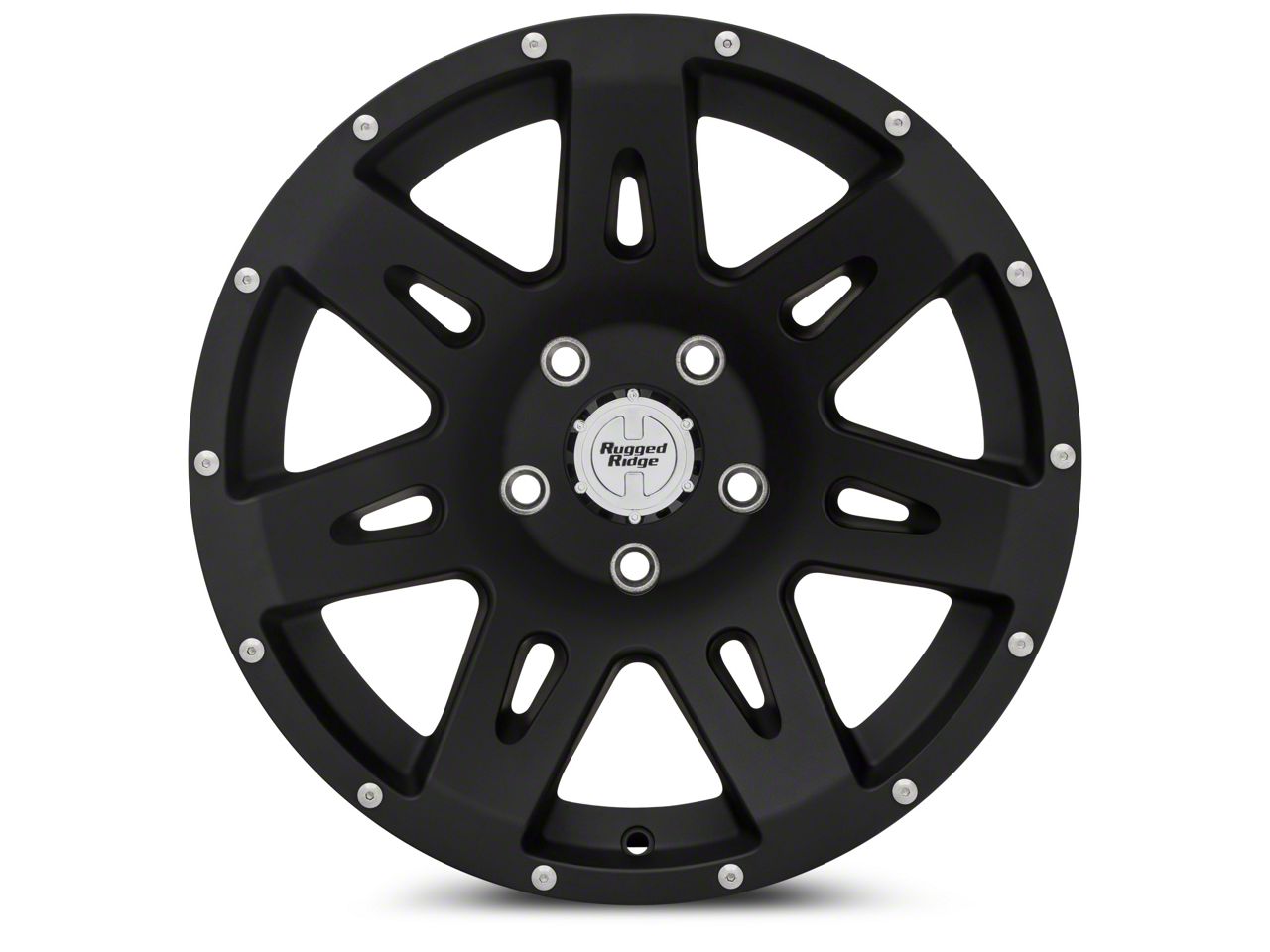 Rugged Ridge XHD Satin Black Wheel with Polished Center Cap; 17x9. The Rugged Ridge XHD Satin Black Wheel with Polished Center Cap offers a striking balance of style and refinement. Its unique design accentuates the vehicle's aesthetic, while the premium construction underscores its robust nature. This wheel is a perfect choice for those seeking both elegance and a strong visual statement.
