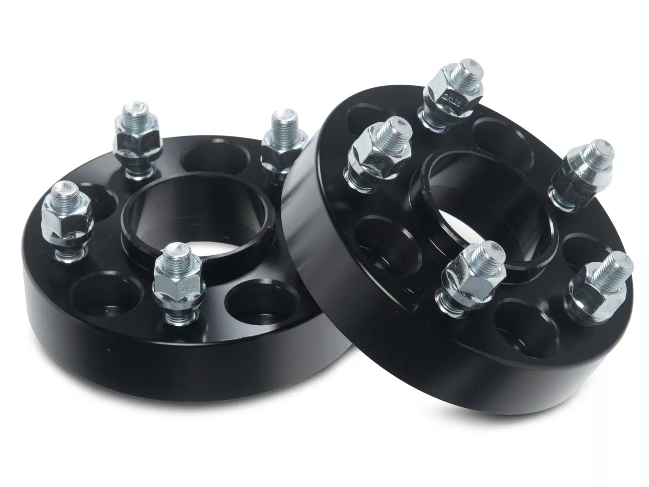 Rugged Ridge wheel spacers are the solution to clearance issues when fitting wider tires on your Jeep, while also increasing track width for improved stability on and off-road. This set of black hub-centric 1.25-inch wheel spacers from Rugged Ridge has a 5 x110 mm bolt pattern and 65.1 mm bore diameter. The hub-centric construction ensures the wheel is precisely centered on the hub or axle, minimizing stress on wheel studs and eliminating vibrations that are common with non-hub-centric designs. Rugged Ridge spacers are constructed of double-anodized, extra-thick 6061-T6 aluminum for long life and superior corrosion resistance. High-strength Grade 8 M12 x 1.52 lug studs are included for reliable performance.