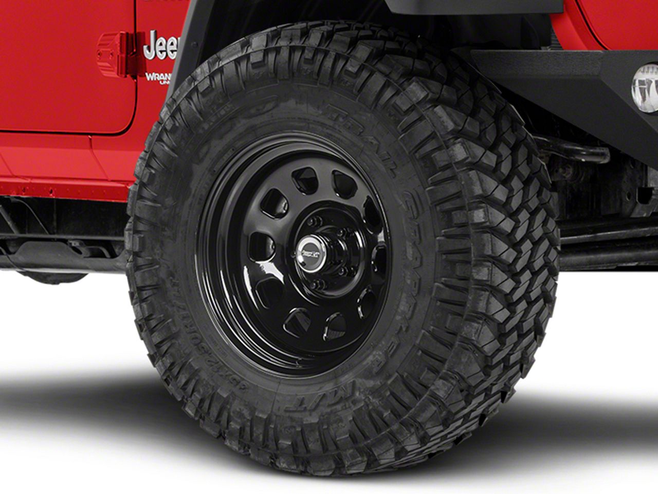 This 17x9 Rugged Ridge Steel Gloss Black Wheel is completed in a high-quality gloss black finish that will make the wheel the envy of everyone. There is a durable clear coat that protects against driving hazards.One-Piece Cast Aluminum Construction. This wheel is manufactured using gravity casting. Gravity casting is the process of pouring a molten aluminum alloy into a wheel mold or form utilizing the earth's own gravity to help fill the mold. The result is a strong, durable wheel that has the same good looks as a more expensive wheel, at a fraction of the price.