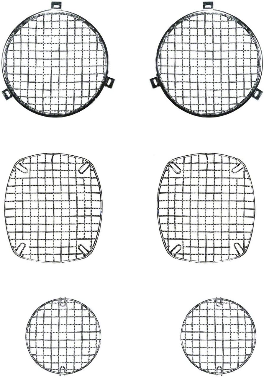 Description. Protect and enhance the look of your Jeep with this six-piece stone guard set from Rugged Ridge that is made of a stainless steel wire mesh and protects your headlights, taillights and turn signal indicators. Match these kits up with the Rugged Ridge Grille inserts and headlight bezels and you have a complete front end enhancement.