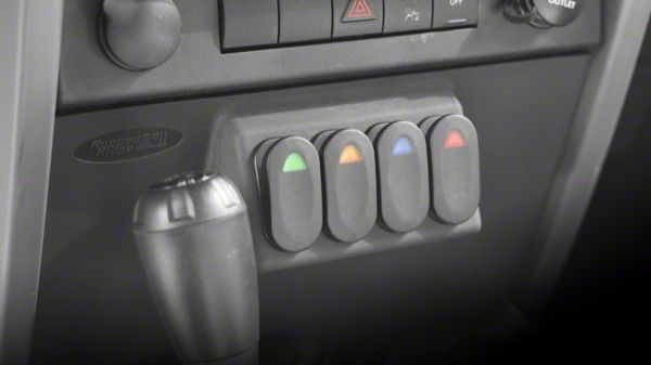 Specs. If you're tired of haphazardly placed accessory switches, then checkout this dash mount switch pod from Rugged Ridge. It mounts in place of the filler panel, just ahead of the shifter at the bottom of the center stack. You can fit up to 4 switches to control things like off-road lights, or a winch. And the kit even comes with 4 illuminated marine-grade 2-position switches, so you can get started right away.