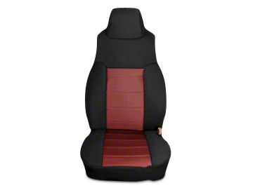 Key Features. Instead of going with just any seat covers, choose these Neoprene Front Seat Covers for a more premium look and feel. They're custom fitted to your Jeep's seats, and that means no weird drooping or bunching up anywhere. In fact, they look so great people might think you had the seats recovered. Since the covers are made of neoprene, they are soft and yet incredibly durable, making them able to handle some serious outdoor adventures. After sitting in direct sunlight, the covers don't heat up as much as certain materials, cutting down on the discomfort of burning legs and backs.