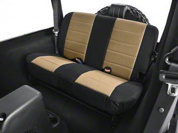 Stylish and Protective. Made for the Jeep Wrangler JT, this Rugged Ridge Seat Cover comes in a stylish matte black and desert tan finish. Crafted from neoprene, this rear seat cover protects against dirt, water, and other debris that might damage your ride’s stock leatherwork.