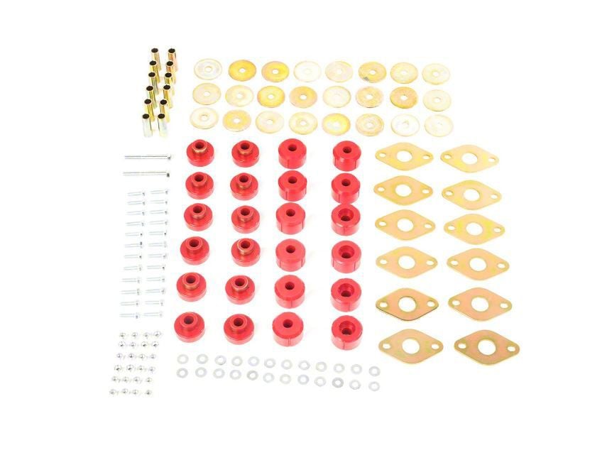 Polyurethane Construction. Quit just dealing with your rubber factory bushings and move onto a material that has the strength and durability to keep up with your Jeep. Rugged Ridge's Polyurethane 12 Bushing Body Mount Kit outperforms your stock bushings in almost every area and gives your suspension the advanced durability that you need for on and off road driving.