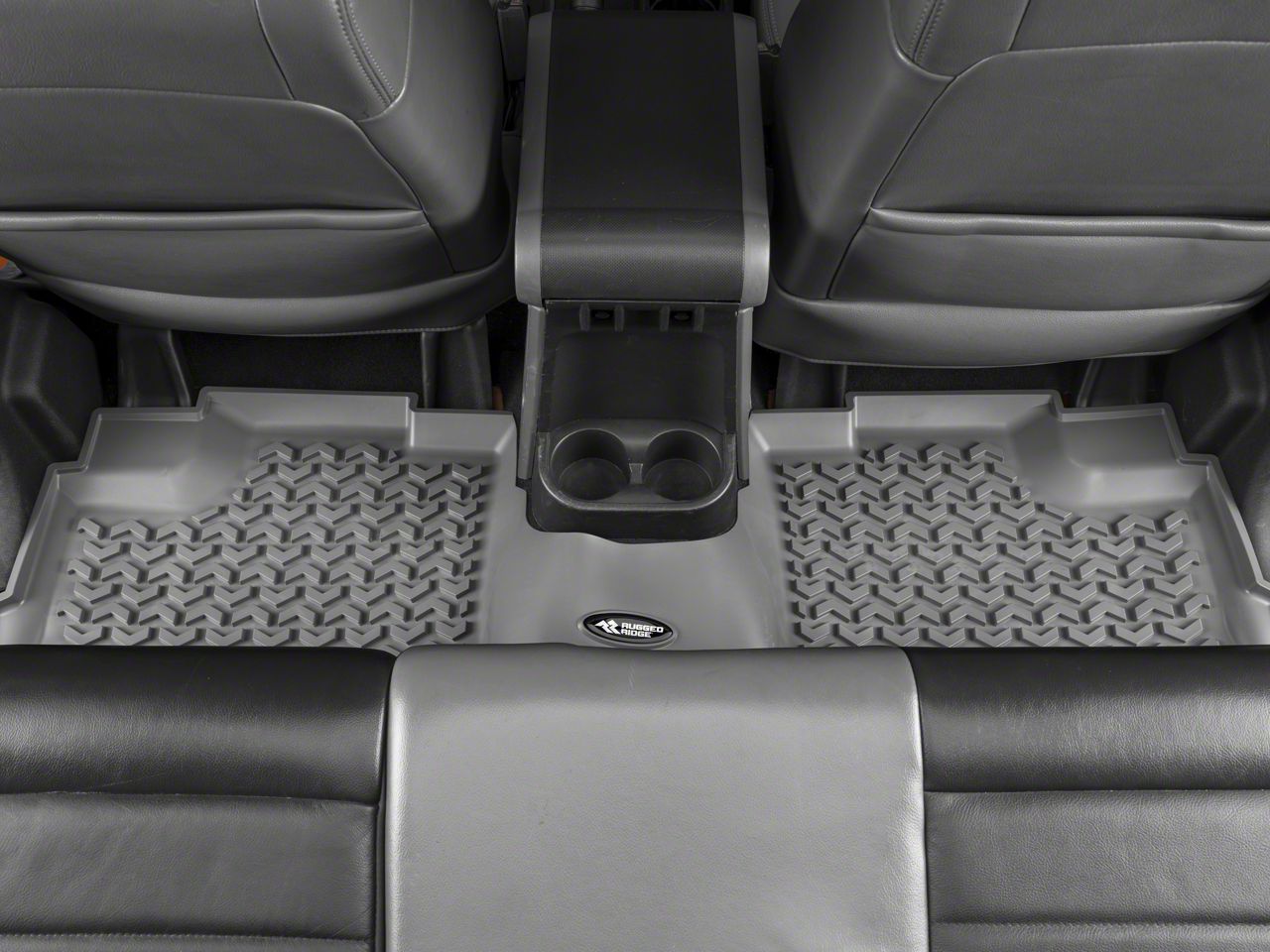 Construction. The Rugged Ridge rear floor liner in gray injection-molded thermoplastic is designed to fit the back row of 2007-2018 Wrangler JK 4 door models. The plastic is OE-quality and very tough and wear-resistant. The top of each liner features ample perimeter walls, a raised reinforced heel area, and 3/8 inch tall chevron tread. The underside of the liner is molded with nibs to keep the accessory firmly in place.