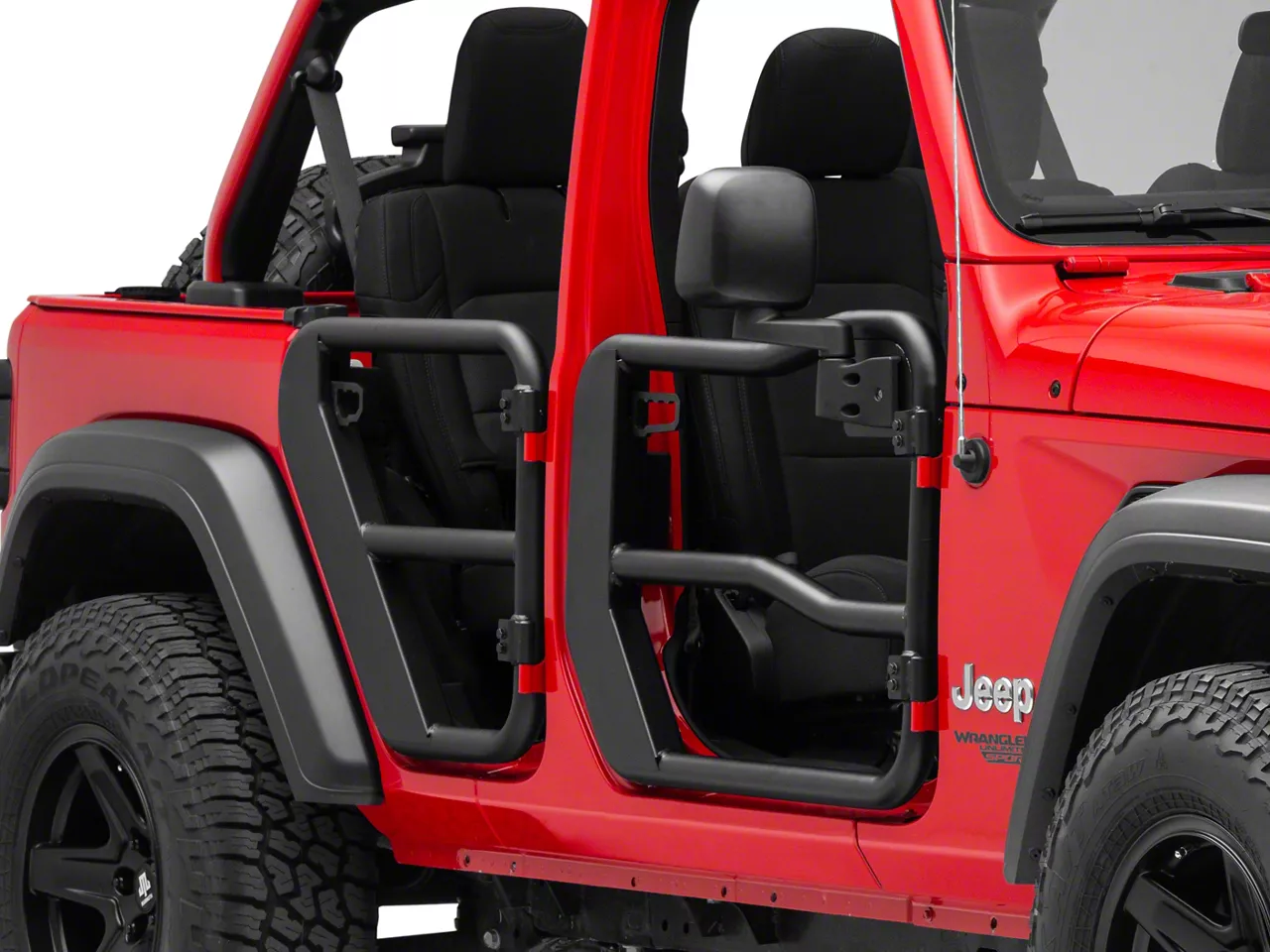 Functional and Convenient. These Rugged Ridge Rear Tube Doors are designed to provide better on-trail visibility when you are driving your Wrangler JL off-road. The heavy-duty steel tube construction also offers protection while giving you an unrestrictive view of the surrounding. They feature adjustable nylon door straps for added convenience. These tube doors can also be easily stowed away when not in use.