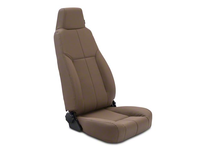 Function. Spice brown is the warm color featured in this Rugged Ridge, vinyl upholstered front seat for your Wrangler. The reclining seat is designed to fit either side of your Jeep and is fully compatible with OE seatbelts for maximum security. It also uses OE hardware and bolts for the installation. The frame is a sturdy tubular steel construction finished in a rust resistant powder coat.