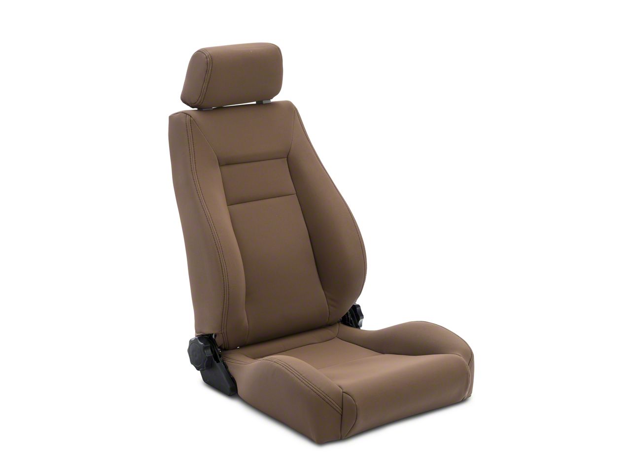 Function. Spice brown is the color used for this version of Rugged Ridge's super seat replacement for Jeeps. The frame is built with powder coated tubular steel outfitted with heavy springs, and this seat fits either the driver or passenger side. Dense foam padding is layered over the frame and topped with an automotive grade vinyl shell. An adjustable, removable headrest is included. The seat works with OE fittings as well as the seat belts.