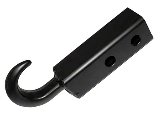 Winch & Line Specs. The Rugged Ridge removable tow hook is a great towing tool for any Jeep hitch. This hook is made from a high grade steel and finished with a black powder coating making it capable of handling any job. This hook is great way to anchor a rope or chain to your Jeep without damaging the hitch. The hook will fit any 2 inch receiver hitch, but does not include hitch pin. This is an excellent replacement part for MS-15402 & Outland 7601, 92121.50.
