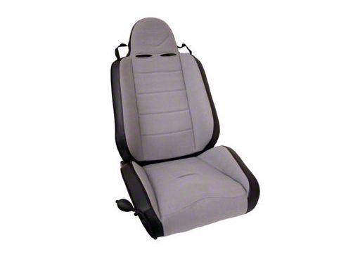 Properties. The slightly expanded bolsters keep the occupant in place, and further support is offered by ball pump lumbar support. This particular model is black with gray trim. The seat works equally well for lifted and non-lifted Wranglers. This seat is long lasting and comes with a five year limited warranty.