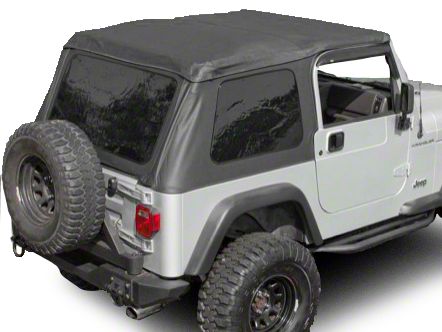 Special Features & Accessories. The side windows zip out and store in an integrated flap in the top, so you can convert this soft top to a summer brief with ease. The heavy pull areas have reinforced stitching, and all seams are sewn with deterioration resistant marine grade thread. Give your Jeep a fastback look with this aerodynamic top from Rugged Ridge! This top comes with the door surrounds and installation hardware.