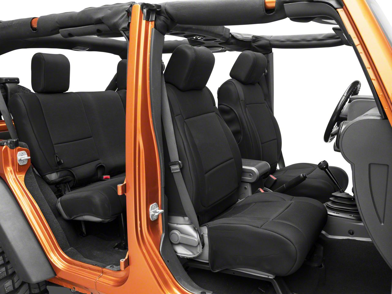 Neoprene Seat Covers. These Rugged Ridge Seat Covers in Black will protect your JK's seats from tears, cuts and the elements. Using water-resistant neoprene, the same stretchy fabric used to make wetsuits, these Seat Covers will adjust to your seat’s contours for a comfortable fit.