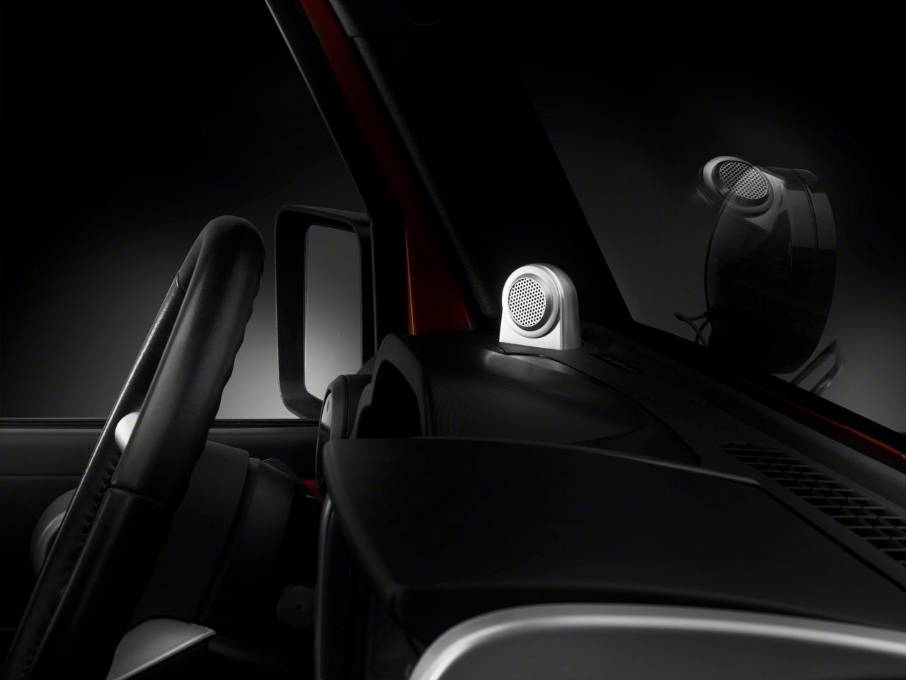 Key Features. There are plenty of ways to boost the look and feel of your Jeep's interior, including installing these brushed silver Tweeter Speaker Enclosures. They really dress things up and look like they are straight from the factory, so anyone who rides in your rig will be seriously impressed. No matter if you get dirt, mud or other grime on them, because they can be wiped clean without any fuss. Installation is a cinch with the included adhesive strips, so you can get back to driving the trails in your area.