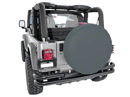 Reliable Functional Design. Keep your spare tire protected from the elements with this Rugged Ridge Spare Tire Cover. The black denim fabric is made of high-quality vinyl and will fit most tires measuring 27 to 29 inches in diameter. This cover protects your spare from rain, snow, dirt, and other debris.
