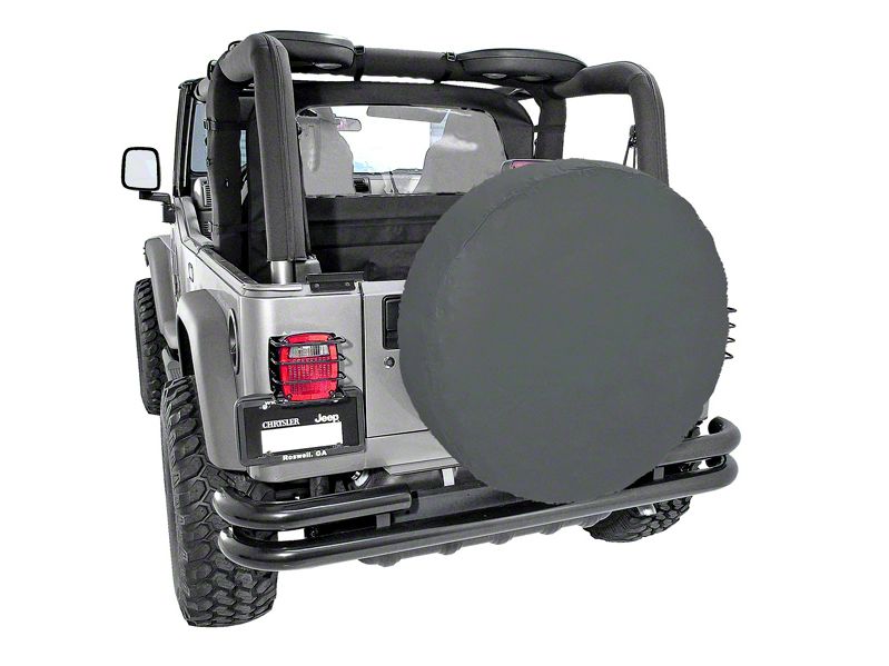 Application. This Rugged Ridge Spare Tire Cover is engineered for all 1966-2018 Jeep CJ5, CJ7, Wrangler YJ, TJ, and JK models.