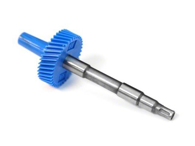 Specs. Featuring a royal blue color coded plastic gear, this 38-tooth long shaft speedometer gear is a quick and effective solution to fine-tuning your YJ Wrangler's speedometer and odometer readings. Adding different sized tires and changing the gear ratio can be a pleasant upgrade, but will make your speedometer readings too low or too high. The 38-tooth gear will help when you have installed a 31 inch tire most of the time.