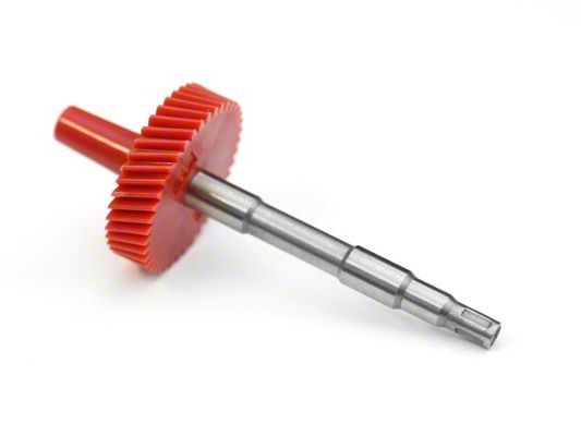Construction. Rugged Ridge's Long Shaft Speedometer Gear with 41 teeth is made from stainless steel and plastic, and mounts easily in the OEM location in the transfer case tail housing. This gear works with a 5.13 ratio and 35 inch tires; a 4.88 ratio and 33 inch tires; and a 4.10 ratio and 27 inch tires. Consult a gear tooth chart prior to installation in any case. This gear works with Wranglers fitted with cable speedometers. A 5 year limited warranty backs the gear against defective manufacture.