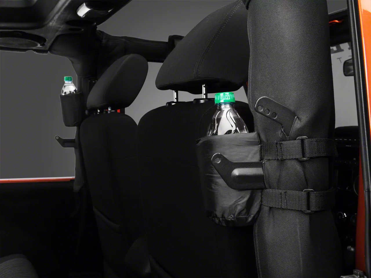 Key Features. Stay properly hydrated while out on the trail with this handy drink holder. It can attach to any of the sports bars on your Jeep, so you decide the best position for your needs. With thick foam insulation, drinks stay cold longer, even in direct sunlight during the hot summer. Heavy-duty velcro on the straps mean the holder can handle full bottles without any problems.