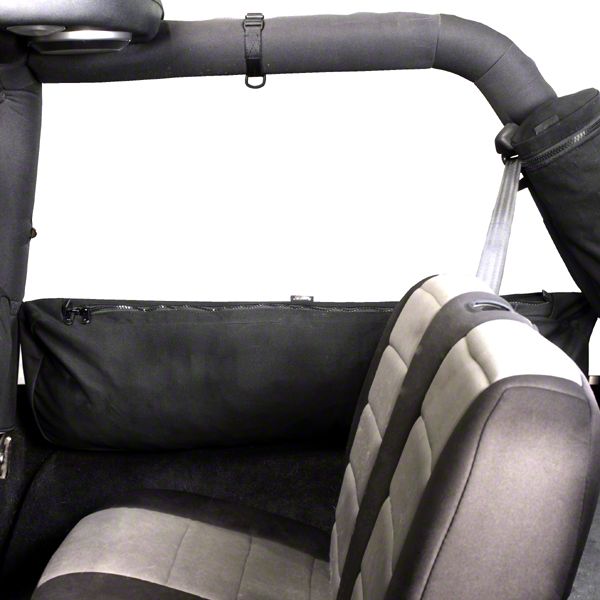 Application. This trail bag can be attached to the roll cage of either hard top or soft top Jeeps. It is held in place by a strong, tough nylon strap, which attaches and detaches from the roll bar in a matter of seconds. The bag does not lessen driver visibility when mounted correctly.