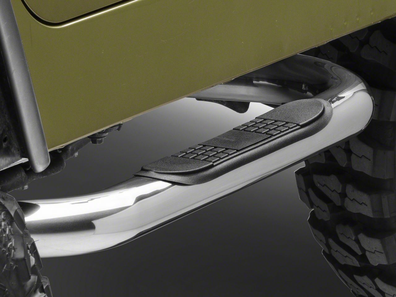 Protection. Nerf bars offer protection from items that may be kicked up towards the Jeep on or off road. They also have a non-slip step in the center to assist with getting in your Jeep, even on those rainy days, without fear of it being to slick. These Nerf bars will give you a little more aggressive look, with a practical use as well! All Hardware is included!