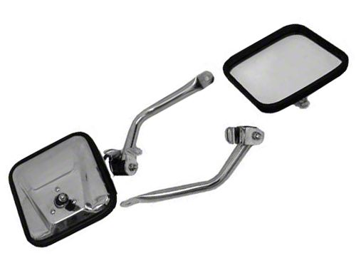 Specs. Do you want to add a cool retro style to your Jeep? Then check out this stainless steel mirror kit from Rugged Ridge. With a polished, mirror like finish and unique design, this is a kit that's going to be turning heads.