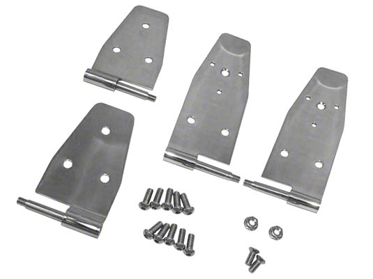 High-Quality Door Hinges. The Rugged Ridge Door Hinges; Stainless Steel provide reliable support and smooth operation for vehicle doors. Designed for durability and functionality, these hinges facilitate easy door movement and secure attachment to maintain proper alignment and safety.