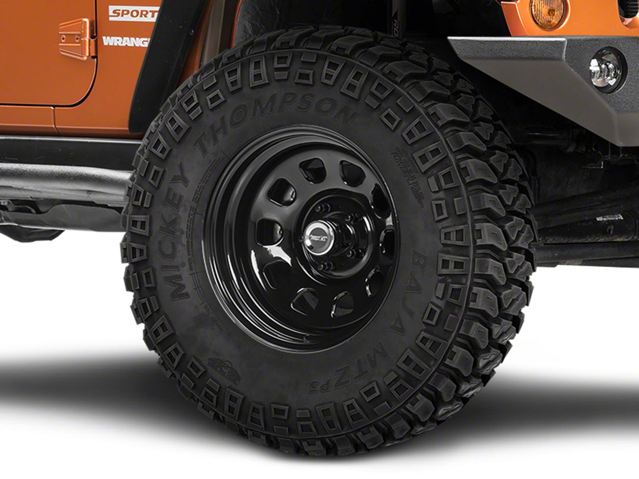 ExtremeTerrain no longer carries the Rugged Ridge Steel Gloss Black Wheel; 17x9; -12mm Offset (07-18 Jeep Wrangler JK). Please check out Jeep CJ7 Wheels & Tires for 1976-1986 Wrangler for an updated selection.