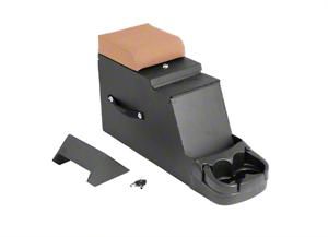 Design. Created by the Jeep Masters of Rugged Ridge / Omix-Ada, this lockable storage console boasts durable steel construction, a key-lockable compartment with a slot for your stereo, adjustable external cup holders, an external slot to hold your iPod, cell phone or loose change, and a comfortable Spice colored padded armrest.