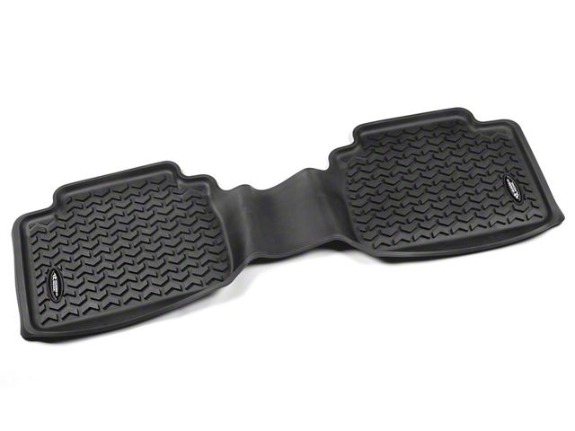 Keeps Rear Cabin Floors Clean. Protect the rear cabin floors of your Toyota Tacoma Access Cab or Double Cab by installing this black Rugged Ridge All-Terrain Rear Floor Mat. This mat is designed to cover both floors in the rear of the cab—trapping dirt and spills with its raised lip and drawing liquid from your shoes with its Chevron-like Deep Tread Technology network of channels.