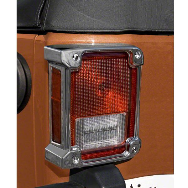 Application. Rugged Ridge's chromed plastic taillight covers work on all models of 2007-2018 JK Wranglers. Fitment is achieved using double-sided tape designed for this purpose, with no drilling necessary.