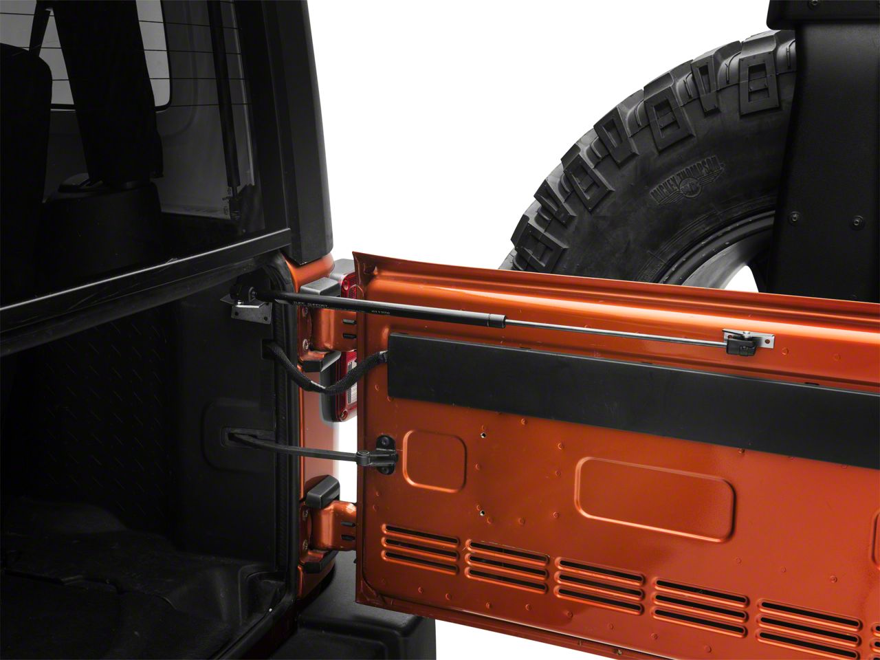 Construction. If you have installed a larger heavier spare tire on your tailgate it can make it more difficult to open. This kit does a great job preventing your tailgate from closing accidently when loading or unloading things from your trunk.