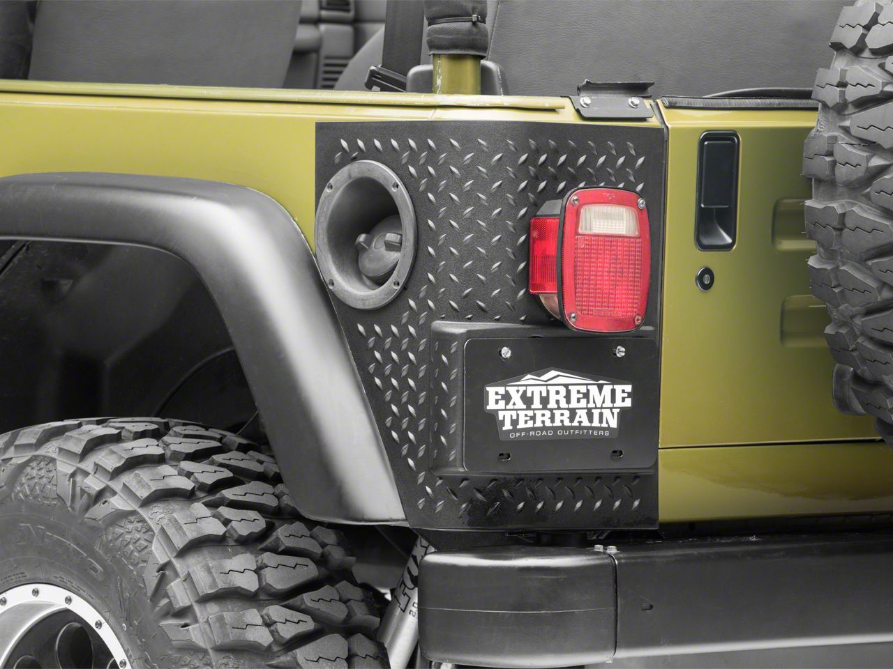 Protection. These thermoplastic body armor sections protect the rear corners of your TJ Wrangler's body from scrapes, dings, and minor impacts on the trail.