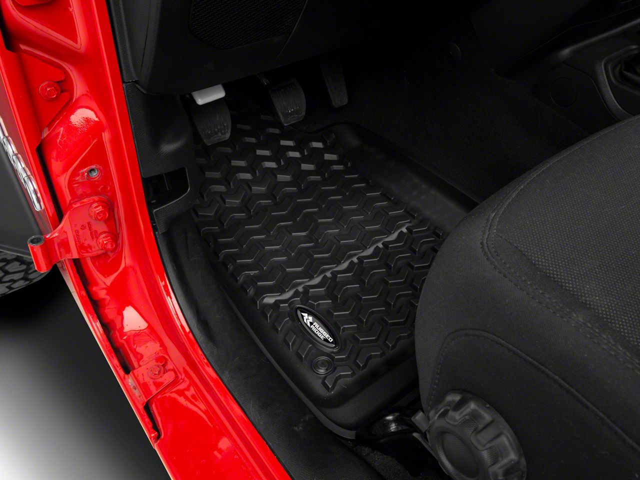 Application. The Rugged Ridge All Terrain Front, Rear & Cargo Floor Liners in Black are specifically designed to perfectly fit all 4-door models of Jeep Wrangler JLs manufactured in 2018-2026.