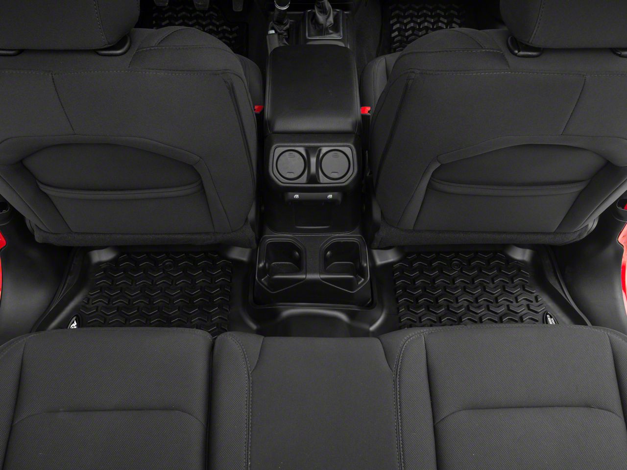 Application. The Rugged Ridge All Terrain Rear Floor Liner in Black is exclusively designed to fit all 4-door models of Jeep Wrangler JLs manufactured in 2018-2026.