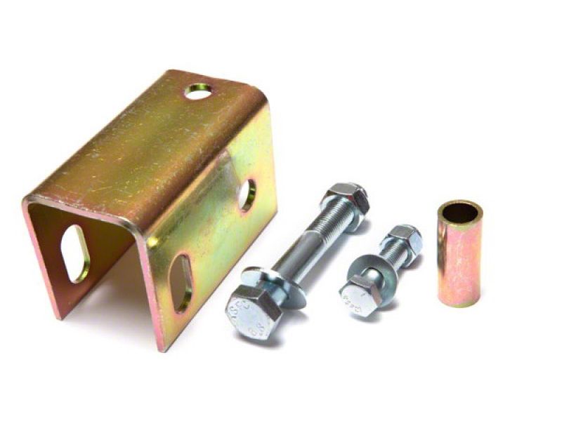 Specs. This replacement part from Rugged Ridge is for use with lift heights up to 6 inches and uses adjustable mounting locations. It is a direct fit to the original track bar and installs easily. It's made using extra-durable and tough steel and features a gold finish for added style.