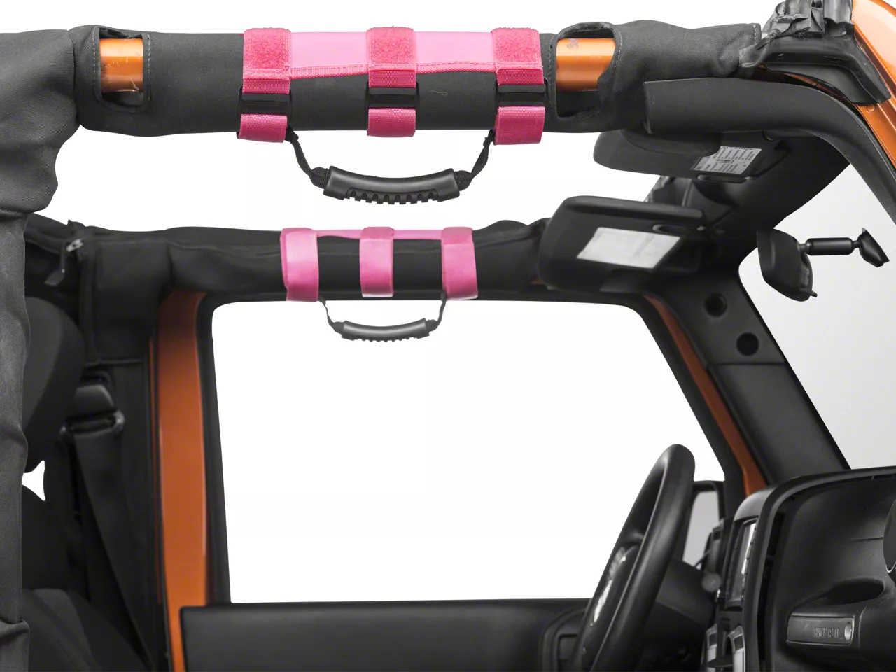Stylish Comfort, Jeep Reliability. Add style to your Jeep Wrangler with these grab handles. The contemporary decorative pink strap color adds flair to your TJ, YJ or JK that others will notice, especially with the doors removed. They make vehicle ingress and egress a snap and are comfortable to hold. The durable molded sure-grip black handles will last and assist you, the kids and loved ones for years to come. They also serve as a support for passengers when the vehicle is in motion.