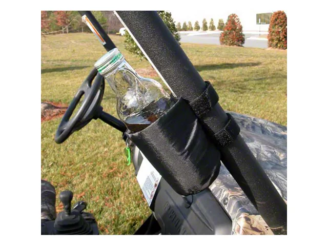 Specs. Keep a bottle of water, a can of coke, or another thirst-quenching beverage handy for the dusty trail with the Rugged Ridge UTV Sport Bar Upholders, which come in a pair for use in your Wrangler. These handy, sleek-looking upholders are made out of satiny black nylon fabric with plenty of padding. They also include foam insulation to keep hot drinks warm in water and give you a cool, refreshing gulp of water, juice, or other drinks in summer. Quick-release Velcro attachment straps are built right into each of these beverage holders.