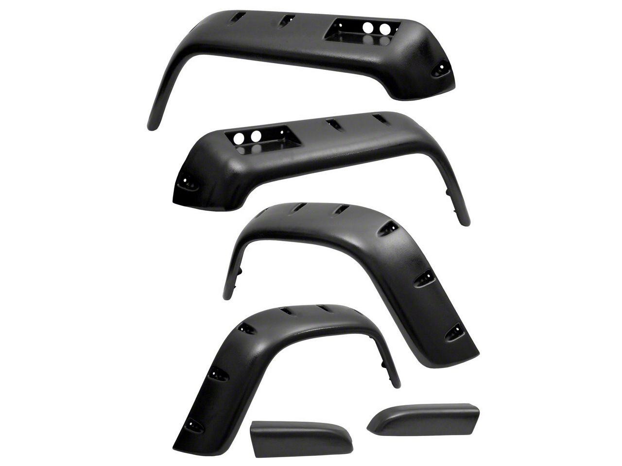 Add Tire Coverage. When you want to add tire coverage to your Jeep, consider the Rugged Ridge All Terrain Fender Flare Kit. This kit comes with all six pieces that you need to replace all of your fender flares and the inner fenders as well. You will receive an outstanding 4.75 inches of tire coverage, which allows your Jeep to remain street legal and trail ready. You will find that this kit prevents any tire rubbing and interference with up travel when you are off road. You can quickly eliminate the sound of the rubbing tire with the clearance offered by this kit. While this kit is designed for all terrains, you may find that it is more of an aesthetic mod over a functional mod, but it will protect your Jeep and work off road. These fender flares are made from durable thermoplastic that works to bend and accommodate any knocks or bumps. The Rugged Ridge All Terrain Fender Flare Kit, 6-piece looks just like your factory flares and the rivets that come with the kit are designed to be corrosion resistant. Installation is a breeze with a bolt-on application.