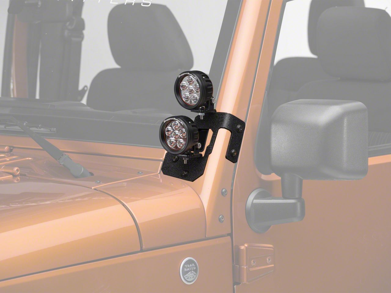 Rugged Ridge 3.50-Inch Round LED Lights with Textured Black Dual A-Pillar Light Mounting Brackets (07-18 Jeep Wrangler JK)Find parts that fit my vehicle
