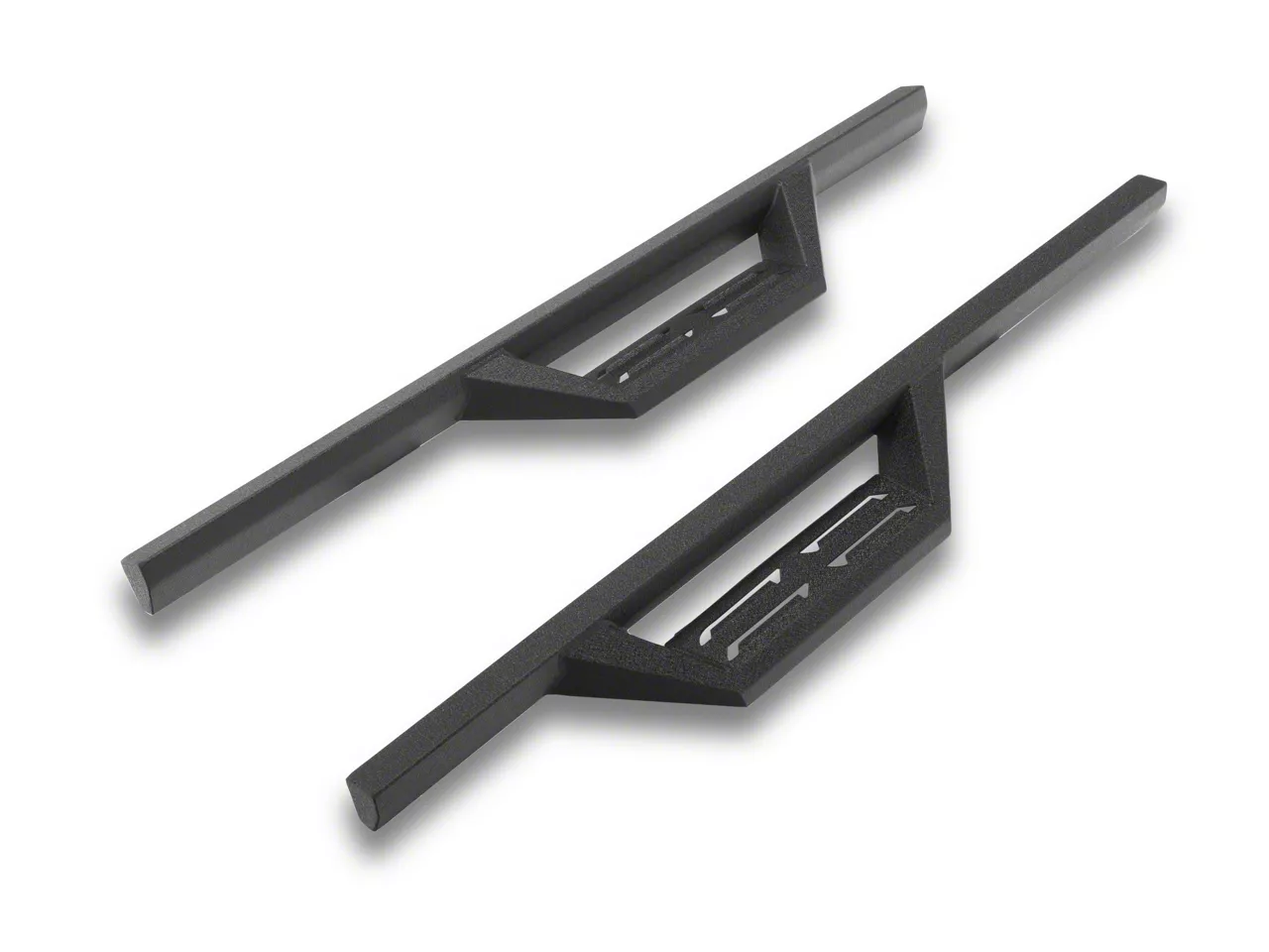 Strong Composition. Crafted from high-quality carbon steel, these step bars are built to last. The textured powder-coat finish ensures that they can withstand even the harshest weather conditions, while the drop of 5.4 inches and step width of 5 inches provide easy and safe access to your vehicle.