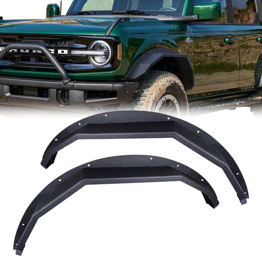 Application. This RYNOSKIN Flat Front Fender Flare fits all 2021-2026 Ford Broncos (Excluding Raptors).
