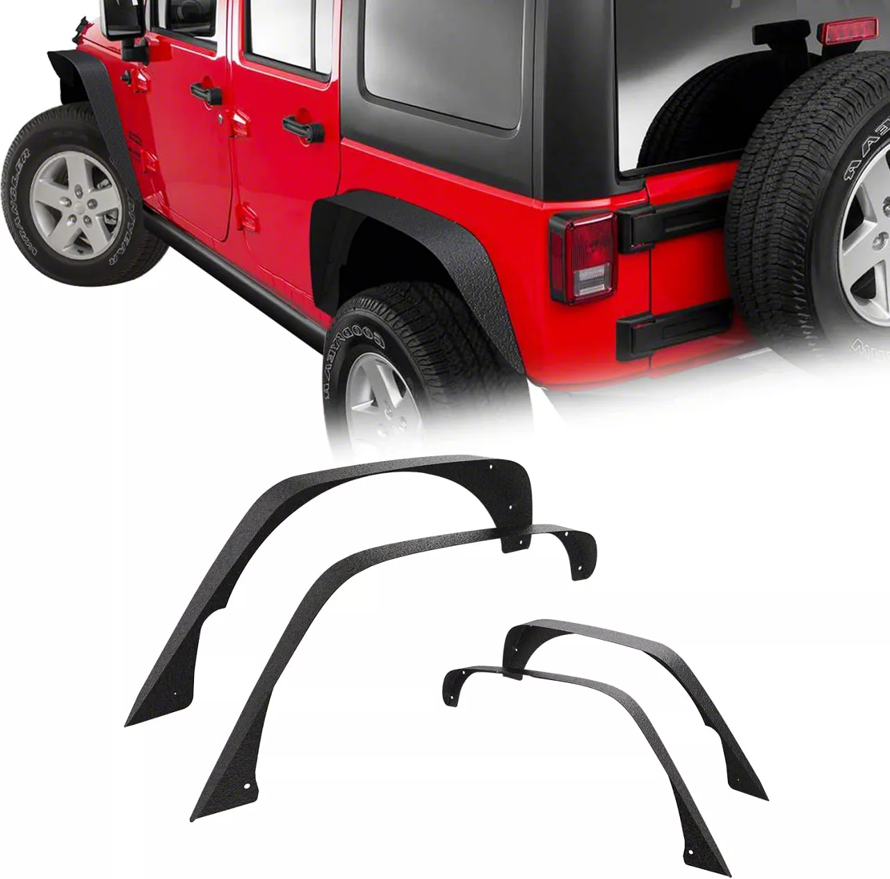 Application. The Off-Road Fender Flares fit 2007-2018 Jeep Wrangler JK models.